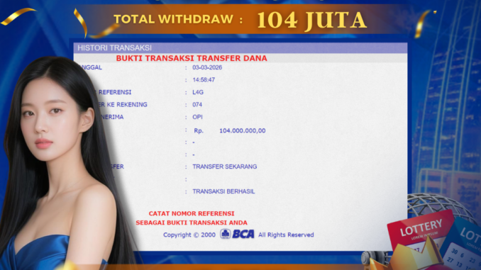 DEWATOGEL mengucapkan selamat kepada user id : TIR*** yang telah berhasil mendapatkan jackpot pada permainan TOGEL DI SYDNEY LOTTO. Kemenangan sebesar Rp 104.000.000,-. telah dibayarkan LUNAS oleh pihak dewatogel kepada pemilik user id setelah yang bersangkutan mengisi formulir withdraw. Proses pencairan dana berlangsung sangat cepat hanya dalam waktu 5-10 menit sudah berada dalam rekening pemilik user id. Bukti transfer yang dapat anda lihat adalah bukti SAH / VALID yang langsung di dapatkan melalui bukti transaksi dari Bank yang digunakan untuk pengiriman dana pada rekening pemilik user id. Terima kasih kami sampaikan kepada para pengguna setia DEWATOGEL yang telah menggunakan situs kami, sebagai Bandar Terpercaya yang pastinya membayar semua kemenangan member hingga lunas. Apakah DEWATOGEL PENIPU ? Reputasi “DEWATOGEL TERPERCAYA” sudah sangat melekat. puluhan hingga ratusan ribu pengguna setia DEWATOGEL tetap menggunakan situs terbesar dan terbaik di Indonesia ini. Hapus rasa was-was dan khawatir anda, kemenangan anda berapapun PASTI dibayarkan hingga lunas.