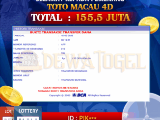 DEWATOGEL JACKPOT TOGEL DI TOTO MACAU 4D Rp 155.500.000,- LUNAS